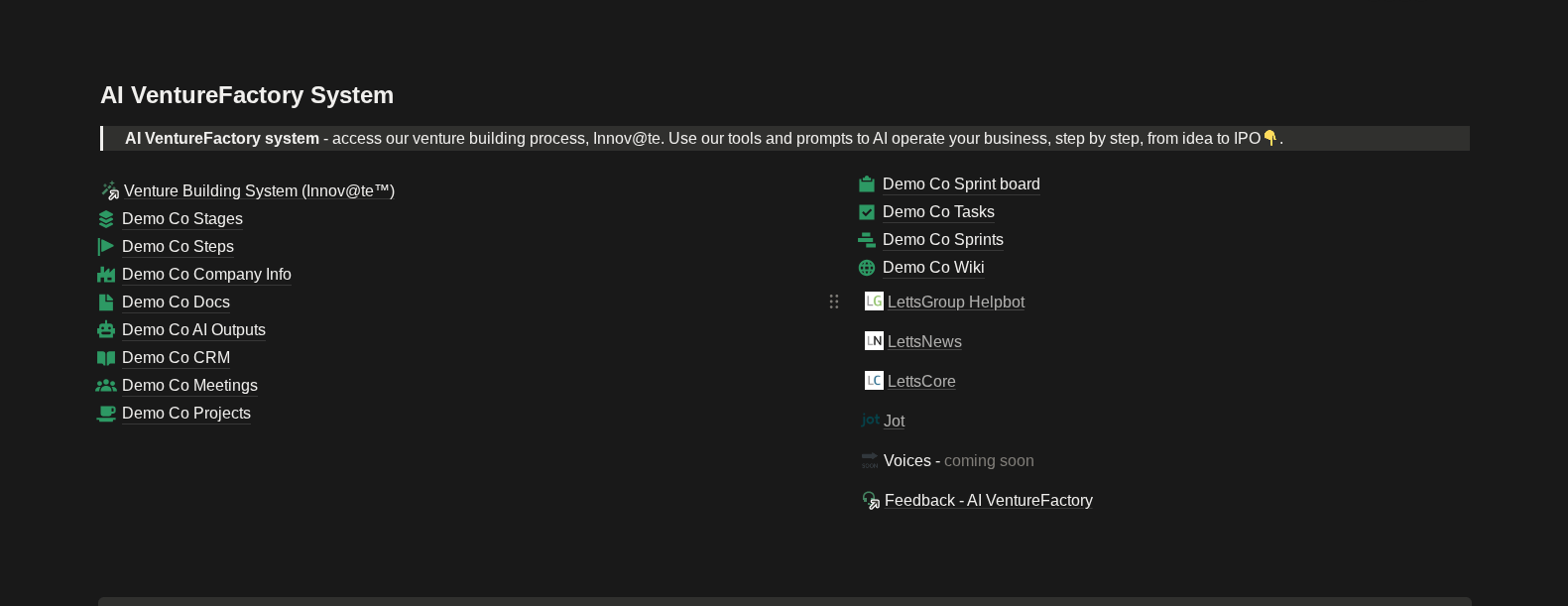 LettsGroup's VentureFactory is an AI-native venture building platform that builds, scales and optimises your company at every stage.