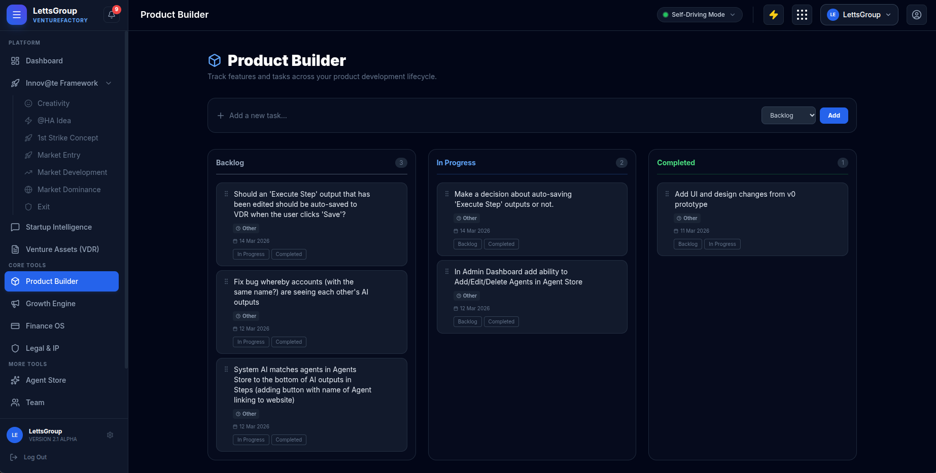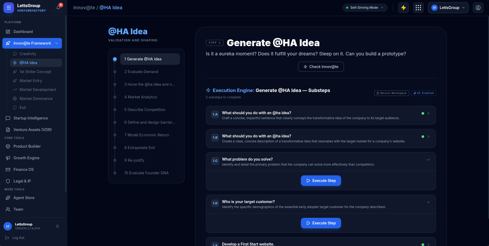 AI VentureFactory - the end-to-end operating system for modern startups.Stop execution chaos. Build, launch, and raise in one startup OS. With clear outputs at every step: strategy → product → growth → fundraising.